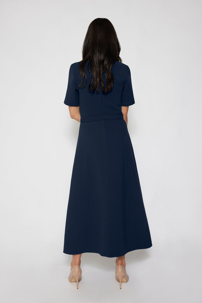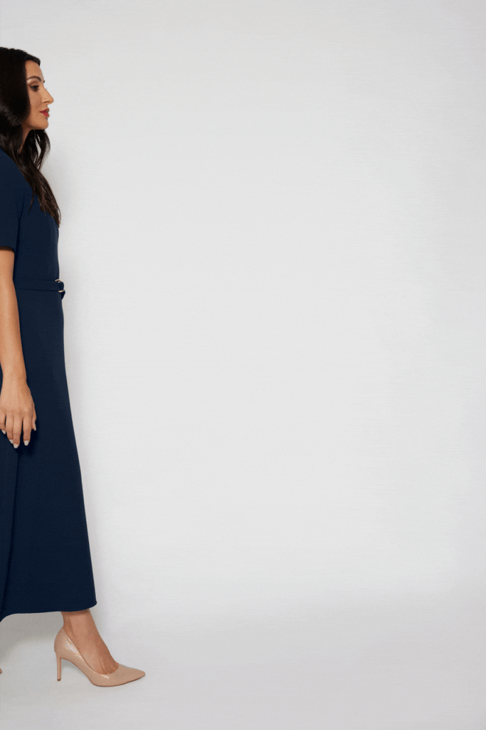 Revel in the sophistication of its working zip front detail, accentuated by a slender waist-defining belt secured with a KG buckle. The dress boasts an effortlessly flowing mid-length A-line skirt, adding an elegant touch to your ensemble.
