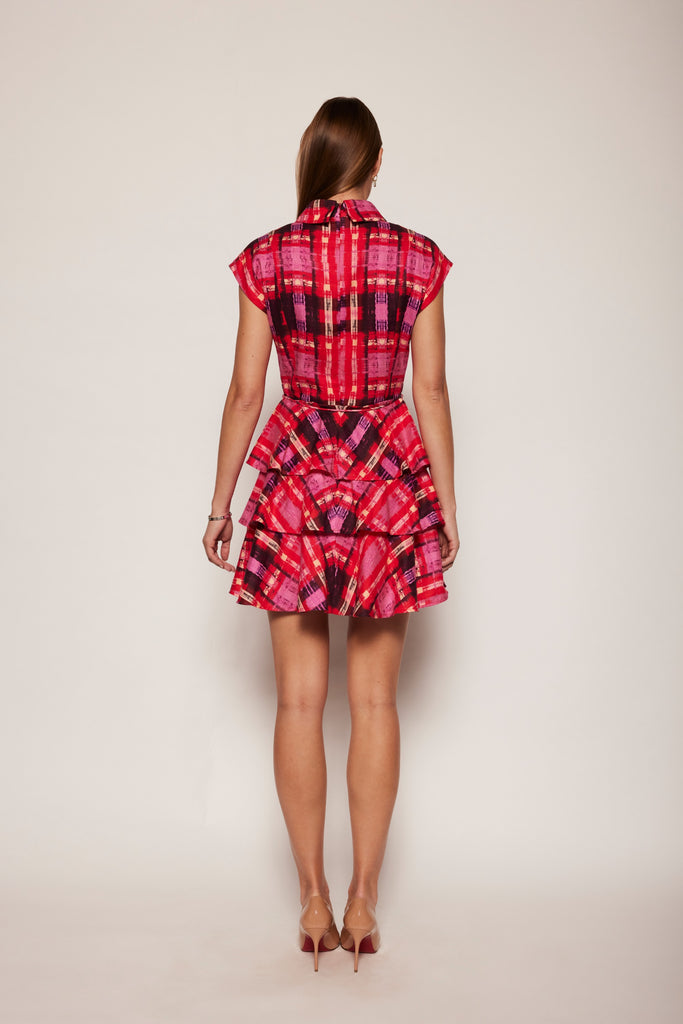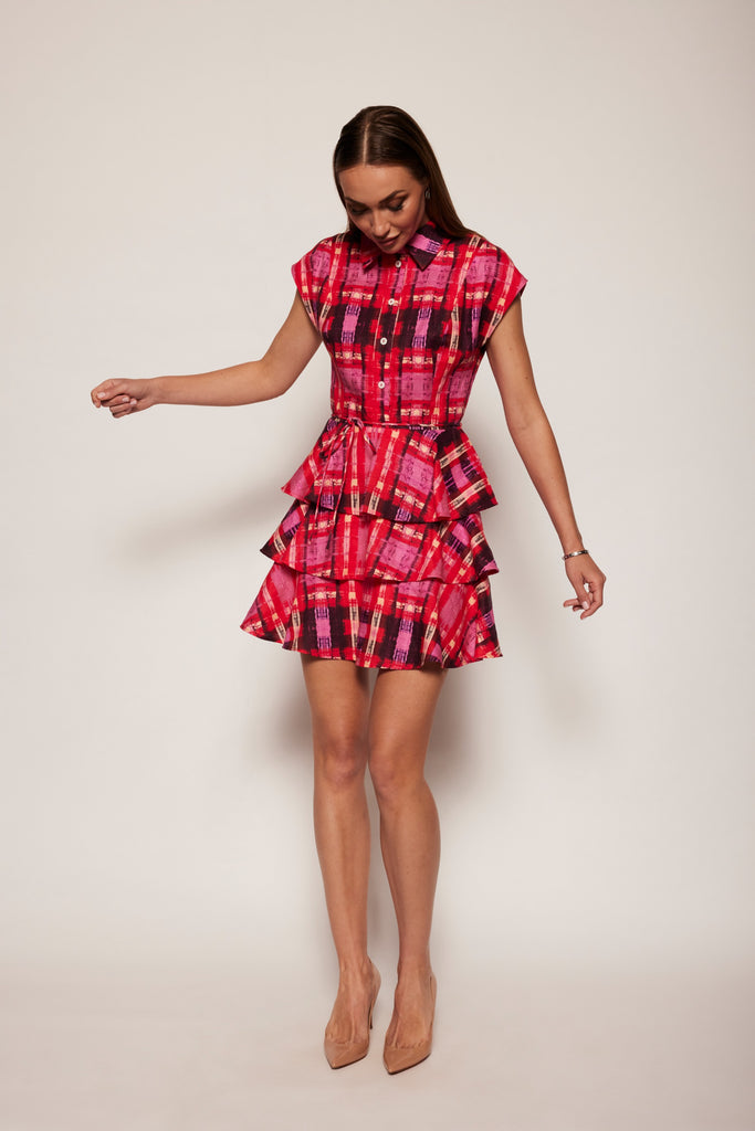 Step into everyday elegance with our linen tailored dress in a unique tartan print designed by artist Georgina Hart. Featuring a button-up shirt top, a chic tie belt, and the much-loved Meraki KG skirt, this ensemble is your key to daywear in true, sophisticated style. Embrace comfort without compromising on elegance.