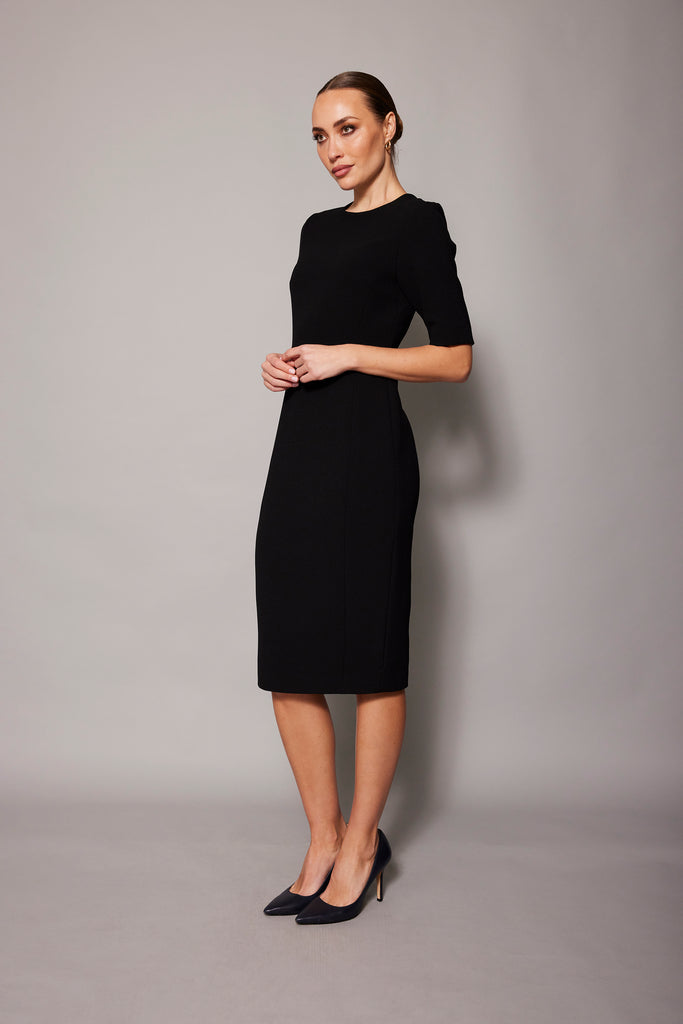 The Blessed Dress Elbow Sleeve features a classic straight silhouette with a flattering round neck and elbow-length sleeves, offering a timeless and versatile style. Crafted to maintain its iconic shape, it seamlessly blends sophistication with everyday wearability.