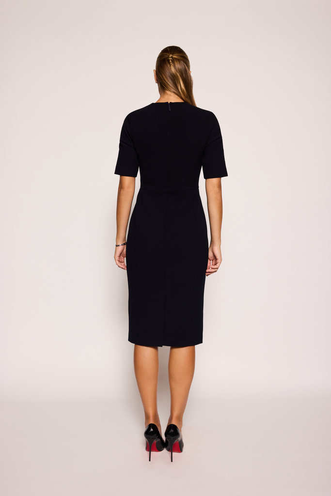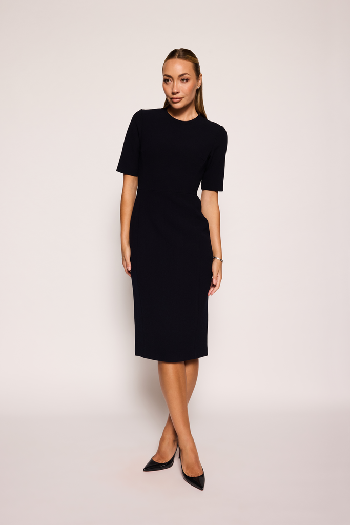 Our classic timeless, cult KG dress, the blessed dress. The dress maintains its classic design, characterised by a panelled and structured fit meticulously crafted to enhance the natural contours of the body, resulting in a sophisticated silhouette that gracefully falls just below the knee.