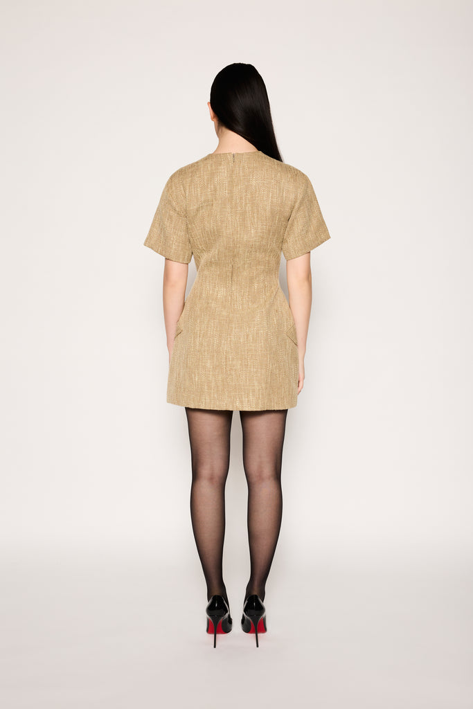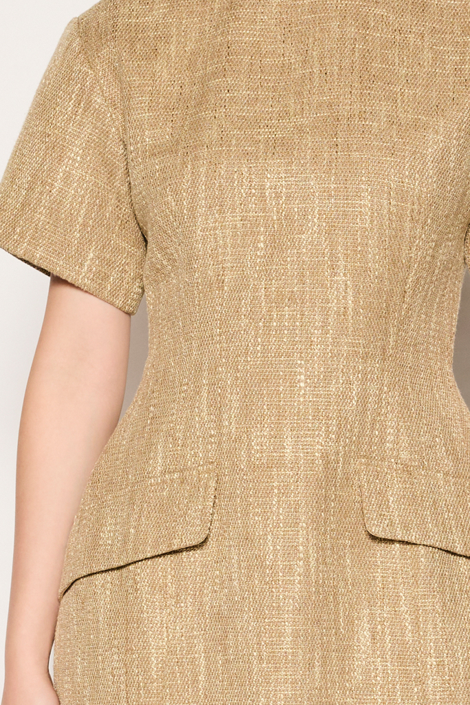 The Paramount Dress is a modern expression of timeless tweed. Designed with a refined silhouette, structured sleeves, and impeccable tailoring, it blends sophistication with contemporary charm. A statement piece that speaks to effortless elegance.