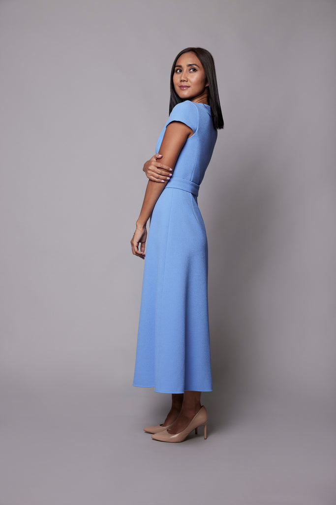 A-line style with with strategic panels and midseam detail, capped sleeves detail, finished off with a self belt with KG buckle.