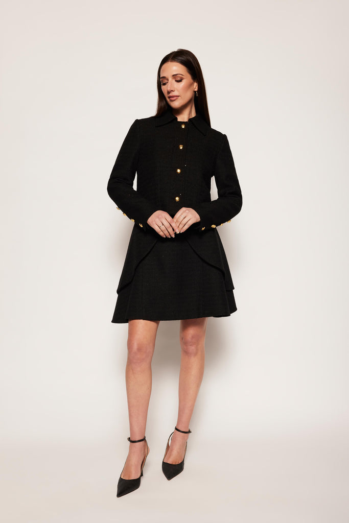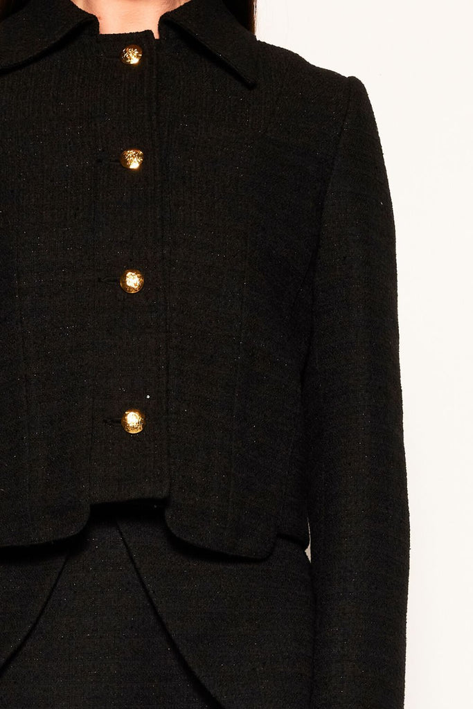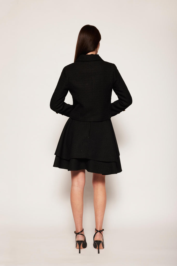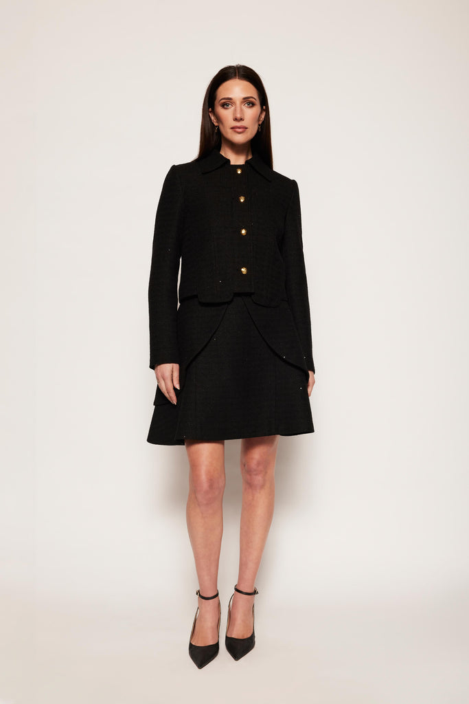 The Diamond Jacket is the ultimate wardrobe foundation, expertly tailored in luxurious black tweed. With a structured silhouette and refined detailing, it’s designed to transition effortlessly from day to night. Whether paired with tailored pants, a skirt, or dressed down with denim, this piece is as versatile as it is timeless. A true investment in style that will work hard for you, season after season.