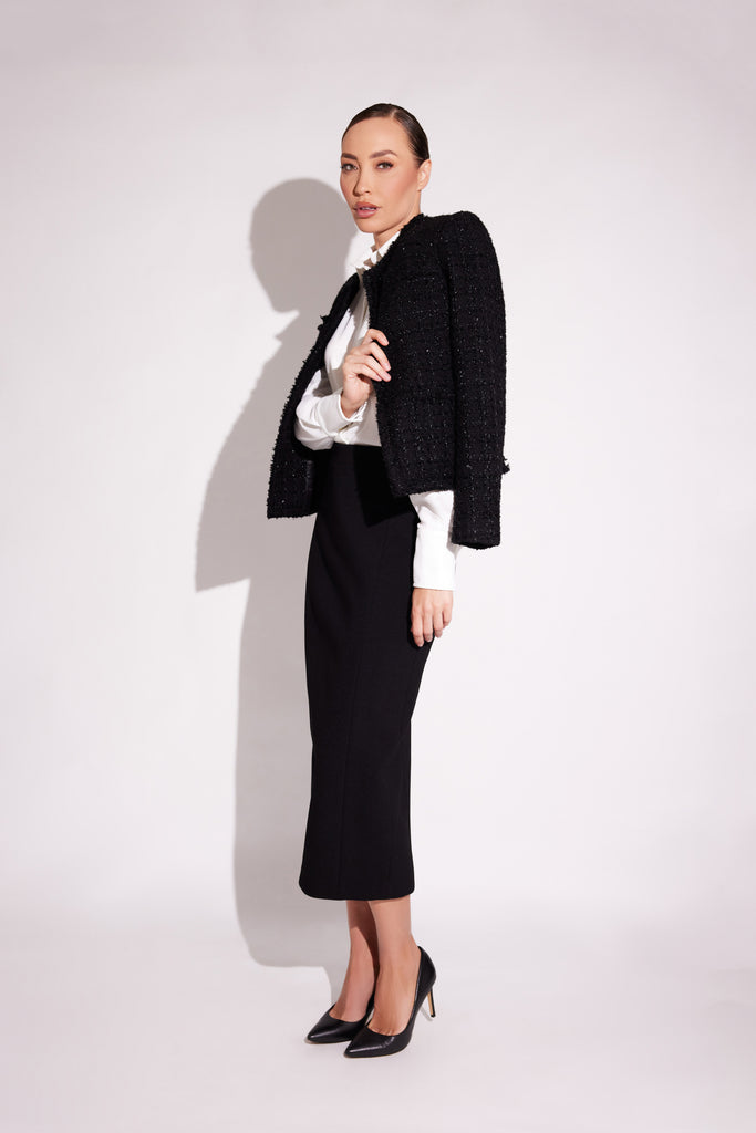A simple, elegant design and wardrobe essential, the Shine Skirt features a pencil silhouette skirt falling below the knee and crafted in our Premium fabric for a luxurious finish.