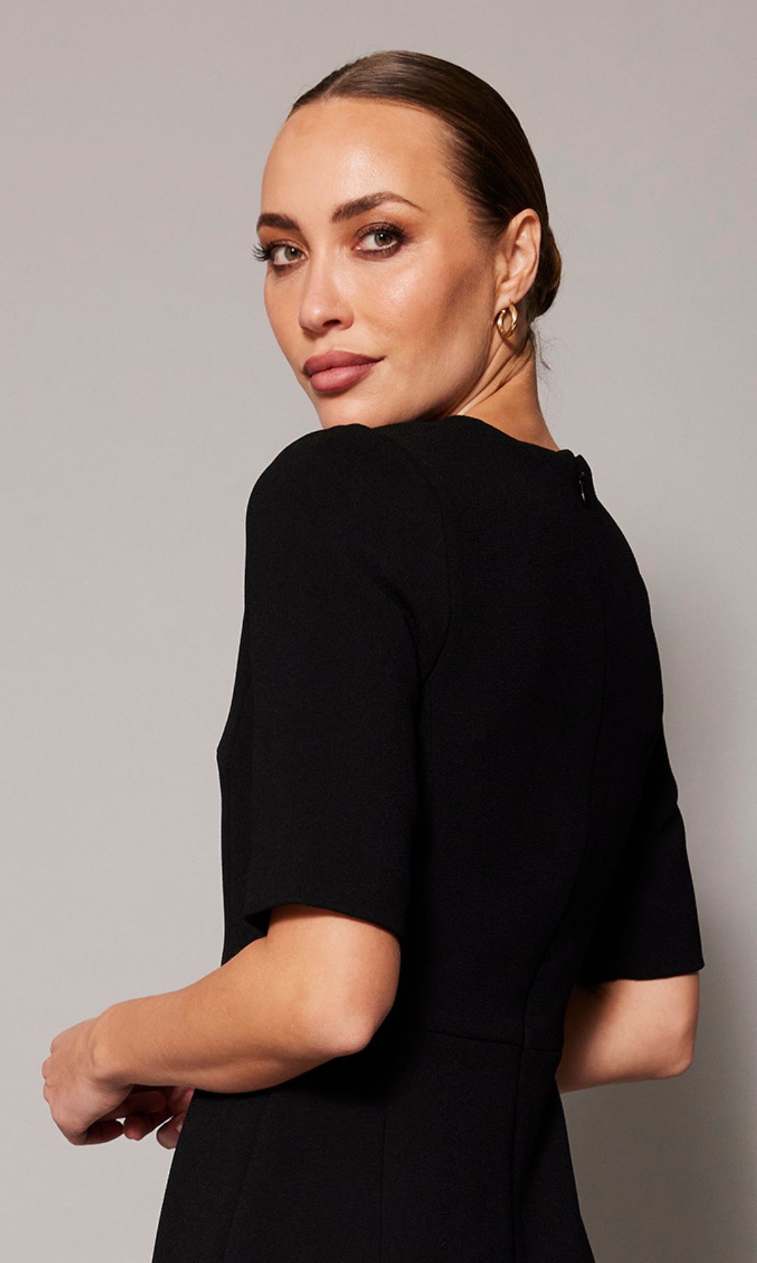 The journey begins with a personal consultation, either in store or virtually. This is your moment to share your vision. Together, we’ll refine the silhouette, choose your preferred neckline, sleeve, hem length, and finishing details. You’ll select from a refined edit of luxurious fabrics, including our signature premium bonded crepe and seasonal tweeds. Whether you’re drawn to sculpted structure or rich texture, we’ll guide you to the perfect fabric for your occasion, shape, and personal style.