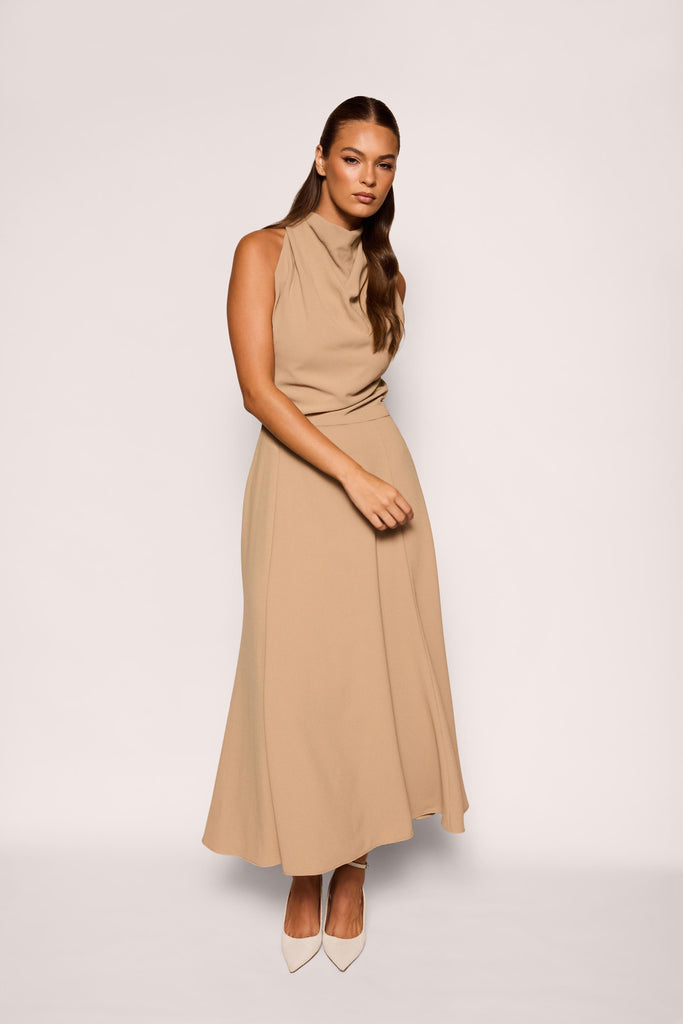The Amalfi Dress in Latte combines timeless elegance with contemporary design. Crafted from our signature London fabric, this piece features a graceful cowl neckline that drapes beautifully, creating a flattering silhouette. The soft, neutral latte tone offers versatility for both day and evening occasions, while the quality construction ensures lasting wear. Perfect for those seeking understated sophistication.