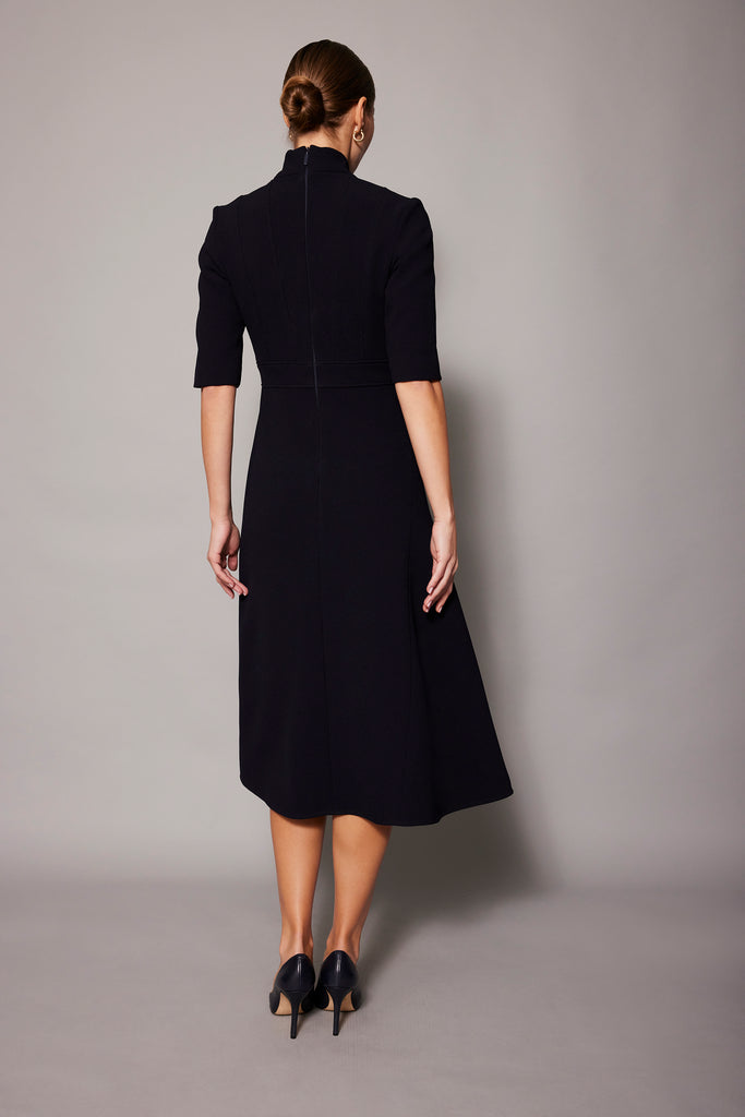 Simple, elegant and timeless. The Asper Dress is pure perfection, featuring a feminine A-line skirt with a delicate fold feature, beautifully contrasted by the high neckline and wide-panelled waistline for a structured silhouette.