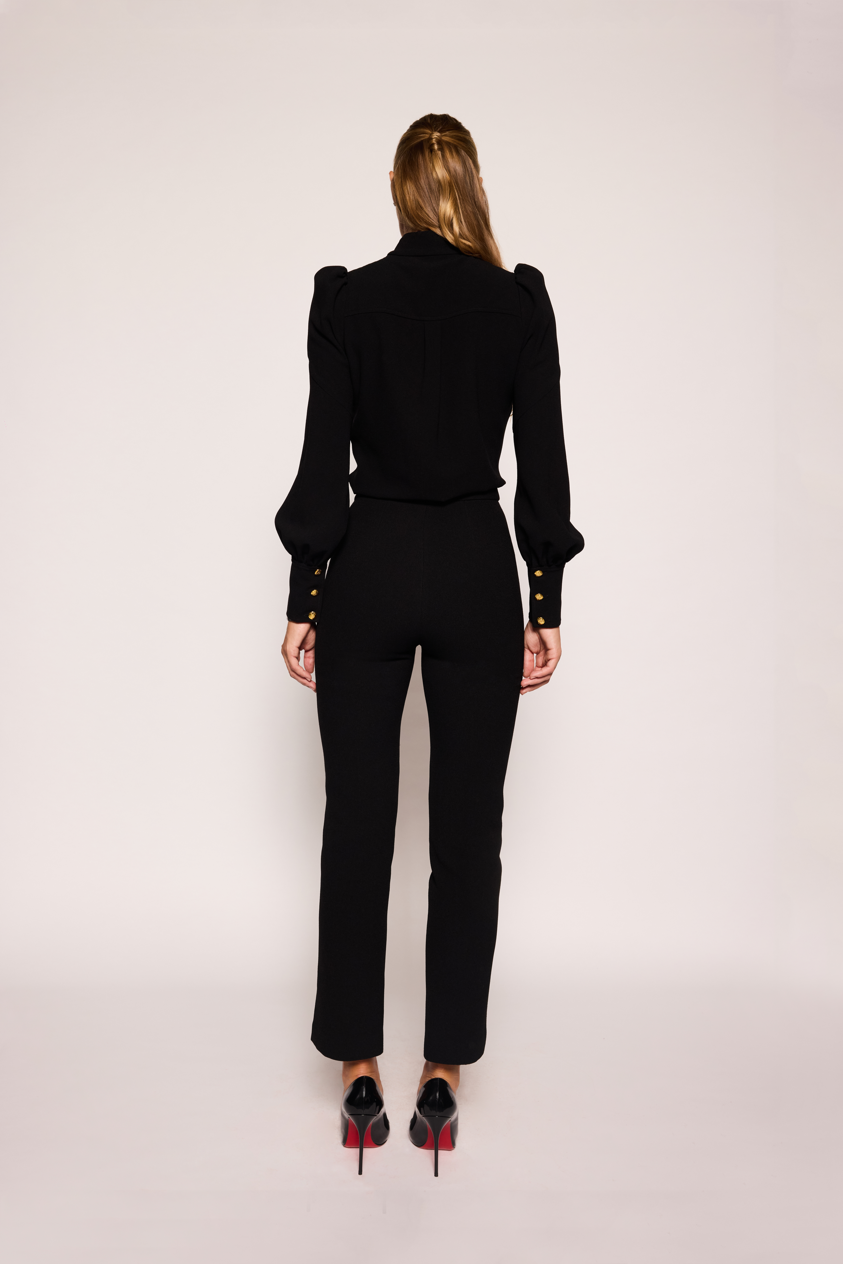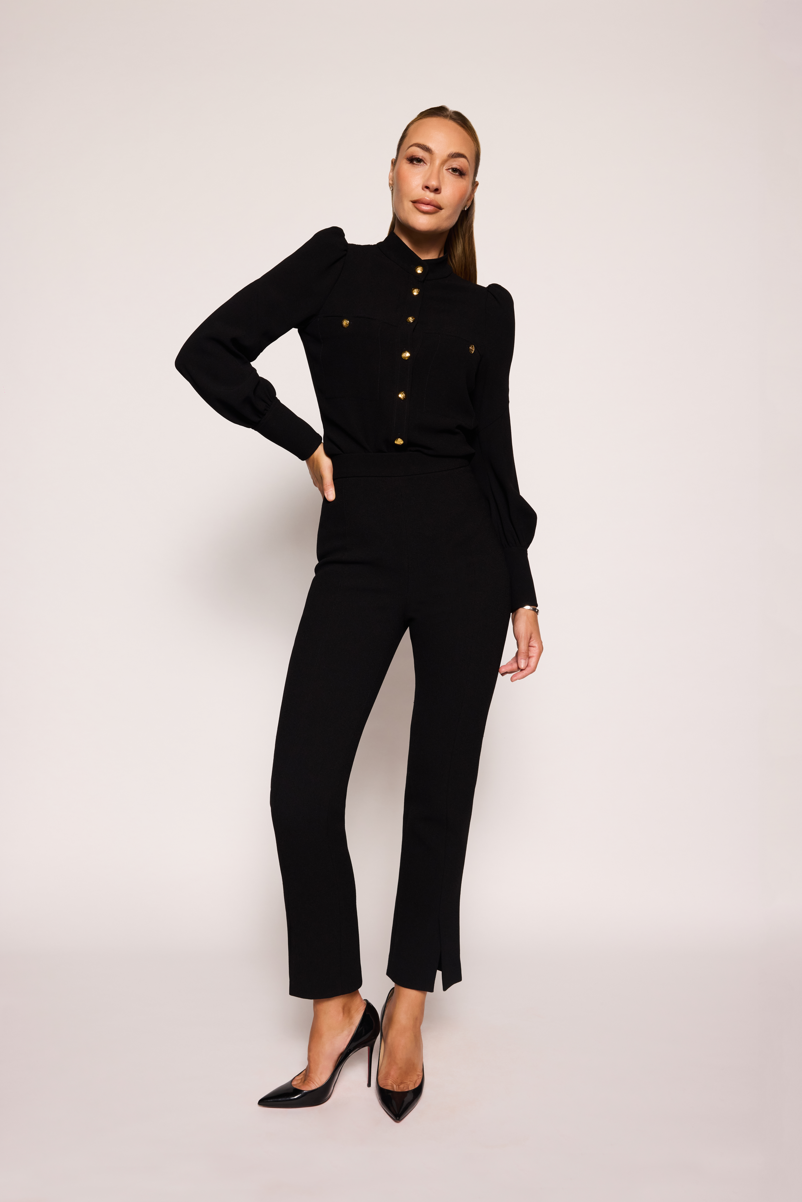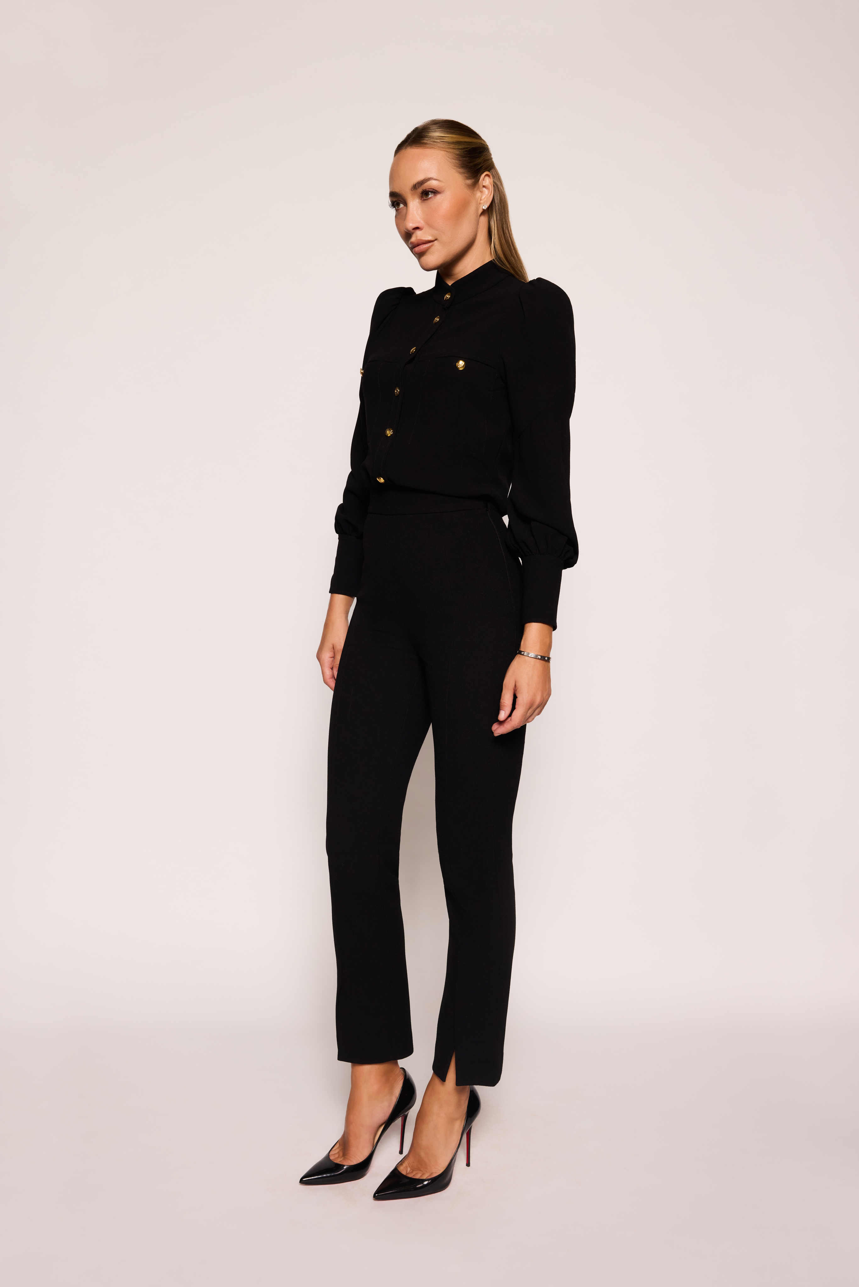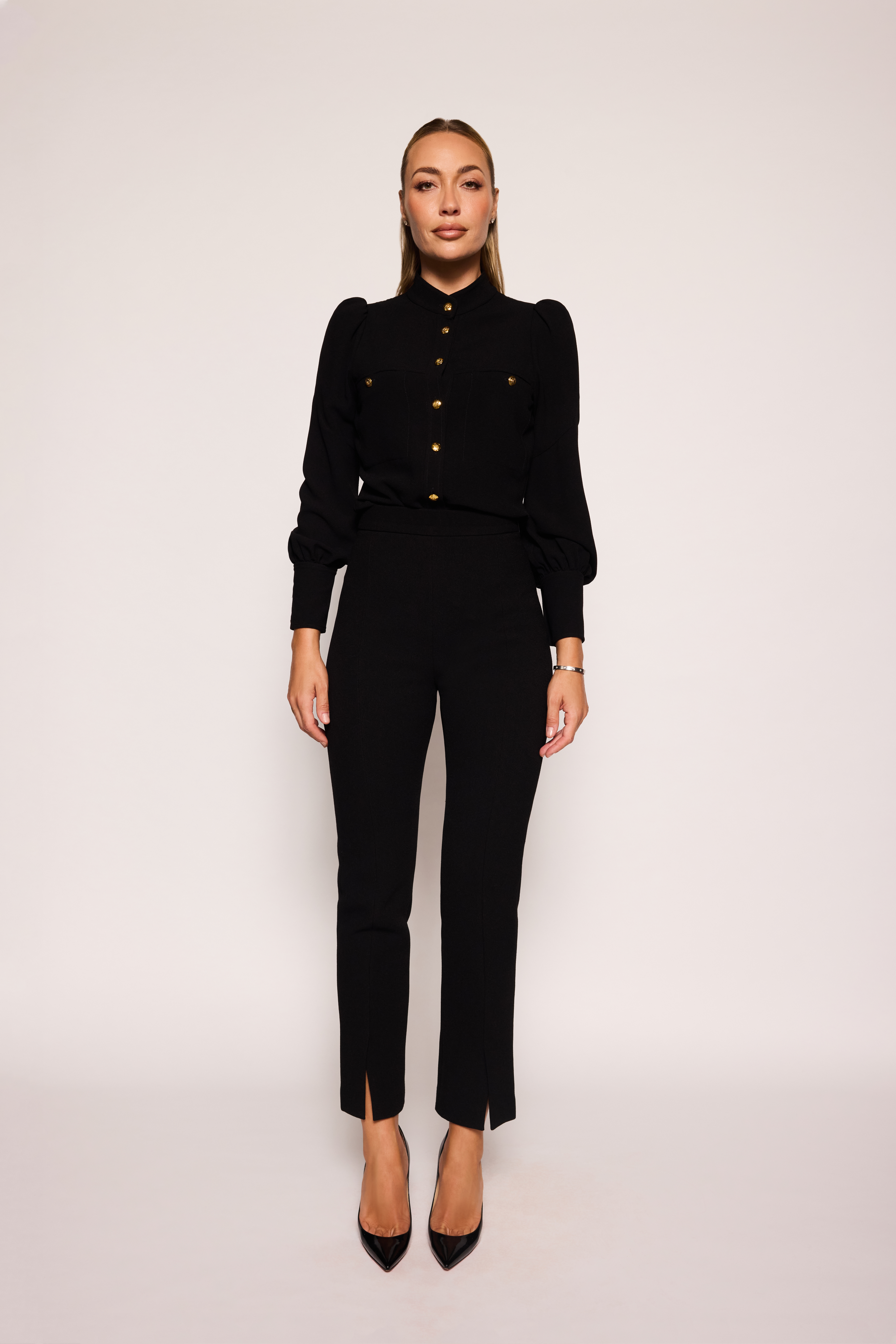 The Clare Shirt is a versatile wardrobe staple, featuring long puff sleeves, two chest pockets, and gold-detailed buttons on the shirt and cuffs. Effortlessly chic, it’s the perfect piece to elevate any outfit.