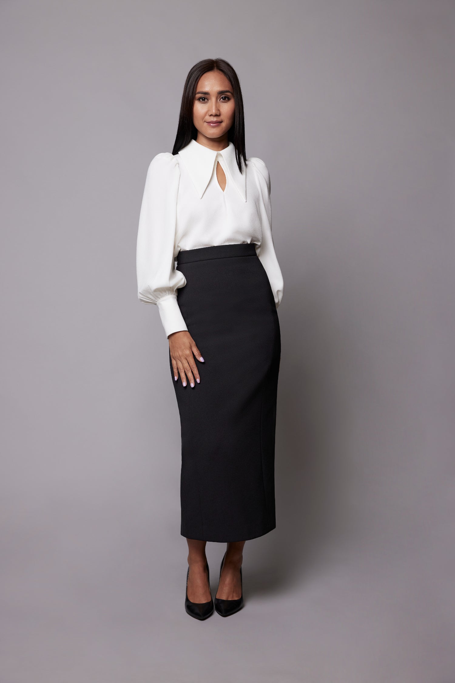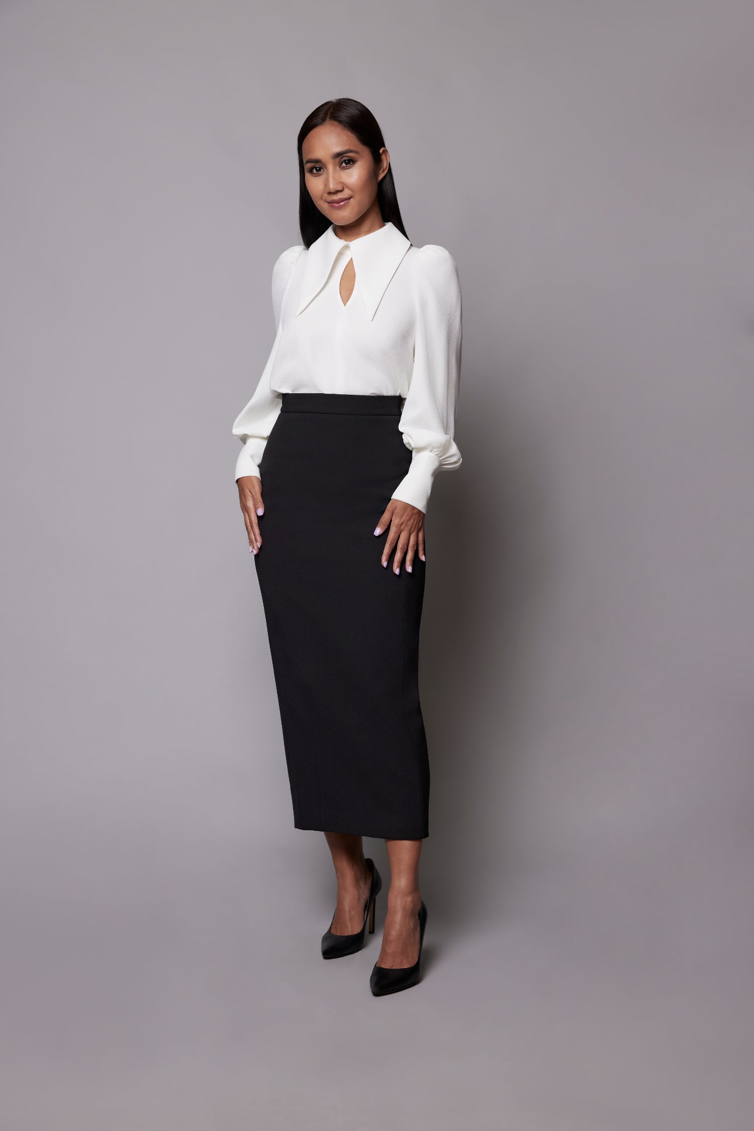 The journey begins with a personal consultation, either in store or virtually. This is your moment to share your vision. Together, we’ll refine the silhouette, choose your preferred neckline, sleeve, hem length, and finishing details. You’ll select from a refined edit of luxurious fabrics, including our signature premium bonded crepe and seasonal tweeds. Whether you’re drawn to sculpted structure or rich texture, we’ll guide you to the perfect fabric for your occasion, shape, and personal style.