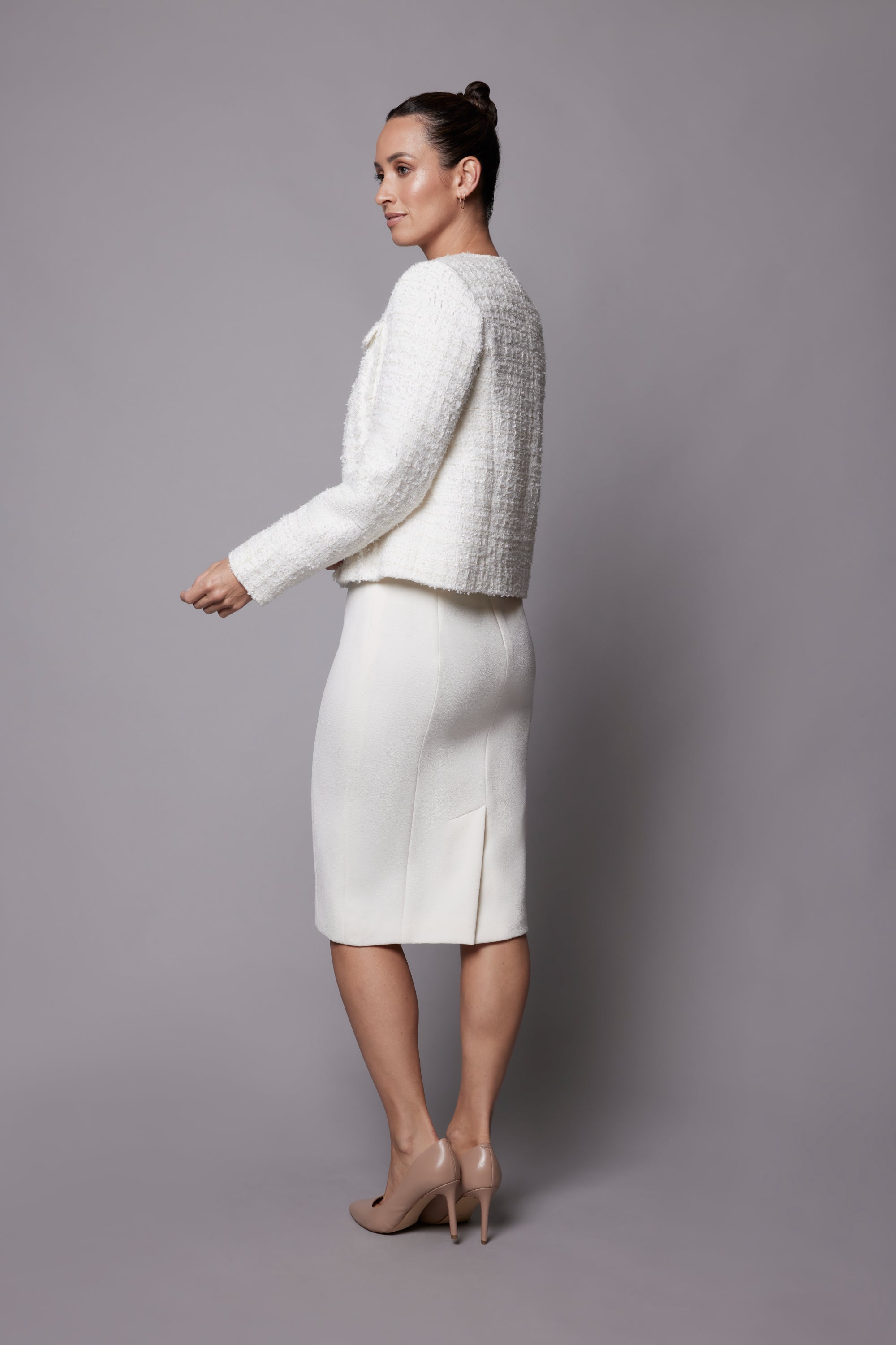 Whether bonded crepe or textured tweed, this fitting ensures your piece is shaped exactly as you envisioned.