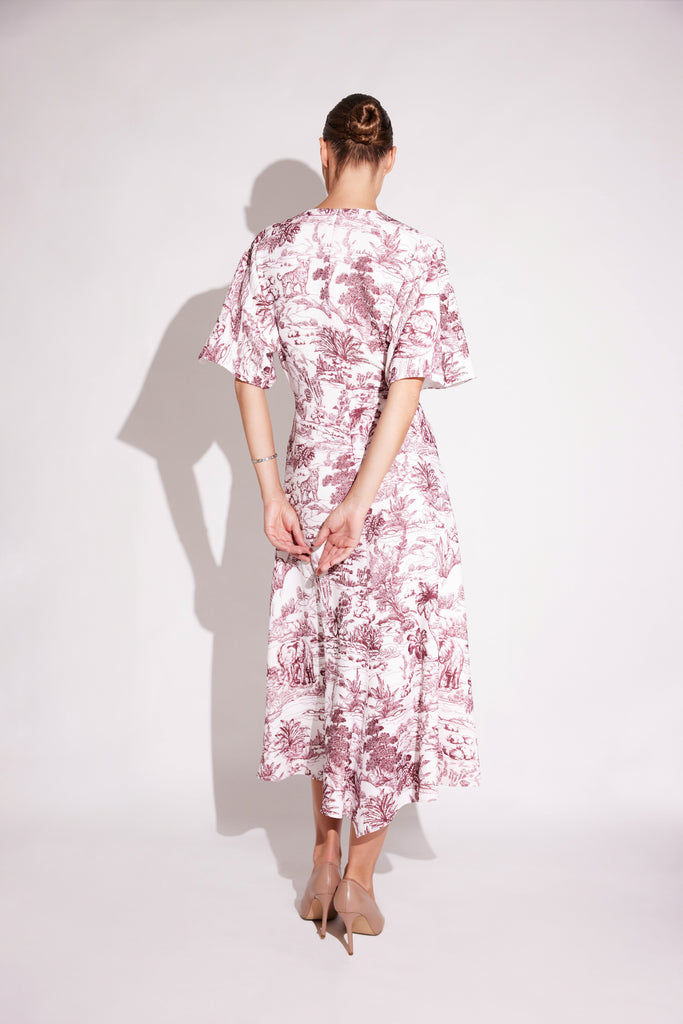 A masterpiece of sophistication and grace. Delicately crafted from luxurious bonded crepe fabric, it drapes effortlessly, exuding an air of refined elegance. The flowing sleeves lend a sense of fluidity and movement, while the meticulously stitched waist detail accentuates your silhouette with subtle allure.