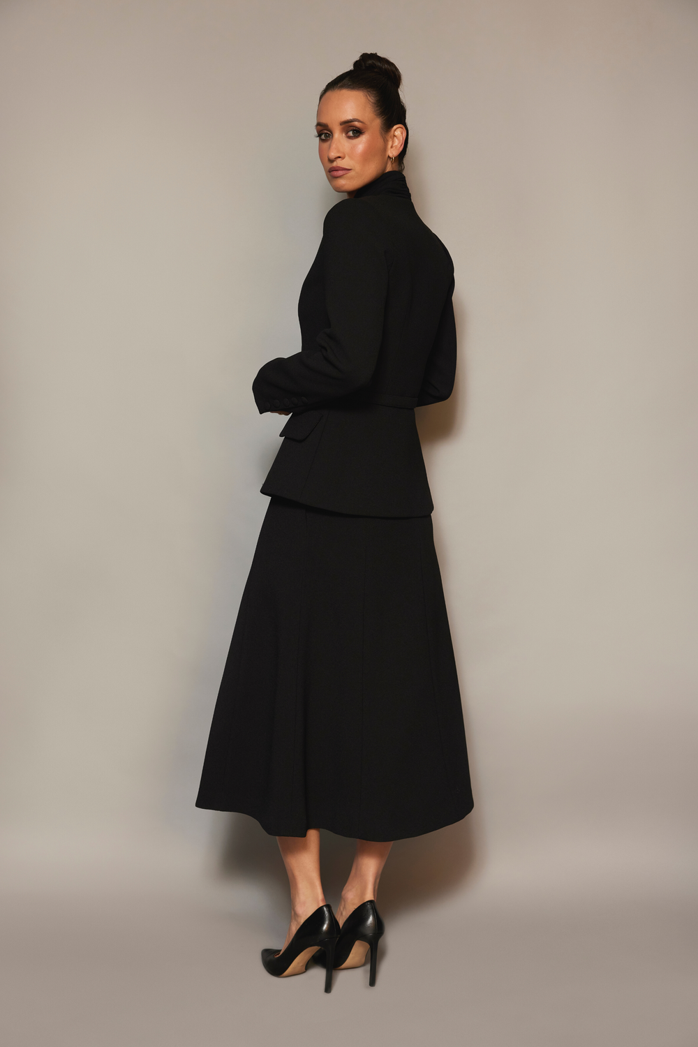 The journey begins with a personal consultation, either in store or virtually. This is your moment to share your vision. Together, we’ll refine the silhouette, choose your preferred neckline, sleeve, hem length, and finishing details. You’ll select from a refined edit of luxurious fabrics, including our signature premium bonded crepe and seasonal tweeds. Whether you’re drawn to sculpted structure or rich texture, we’ll guide you to the perfect fabric for your occasion, shape, and personal style.