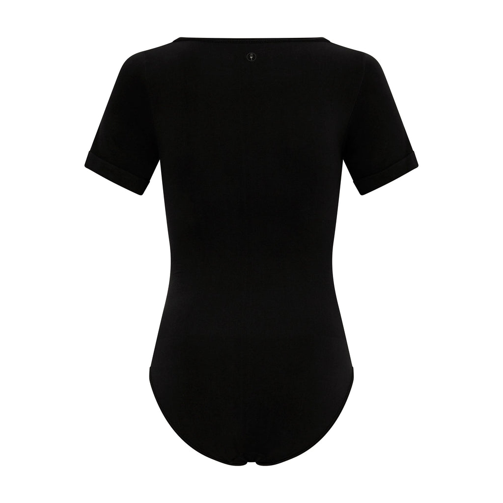 V-Neck Sleeve Brief Bodysuit | Black Beauty